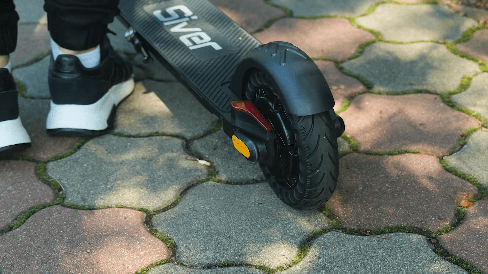 Oprócz niewielkiej baterii mamy tu także małe, bo 8-calowe koła. Według danych producenta hulajnoga z przodu ma mały amortyzator. Jednak do jazdy po nierównych chodnikach nie jest on wystarczający. Bardziej komfortowo jeździ się po równej nawierzchni.