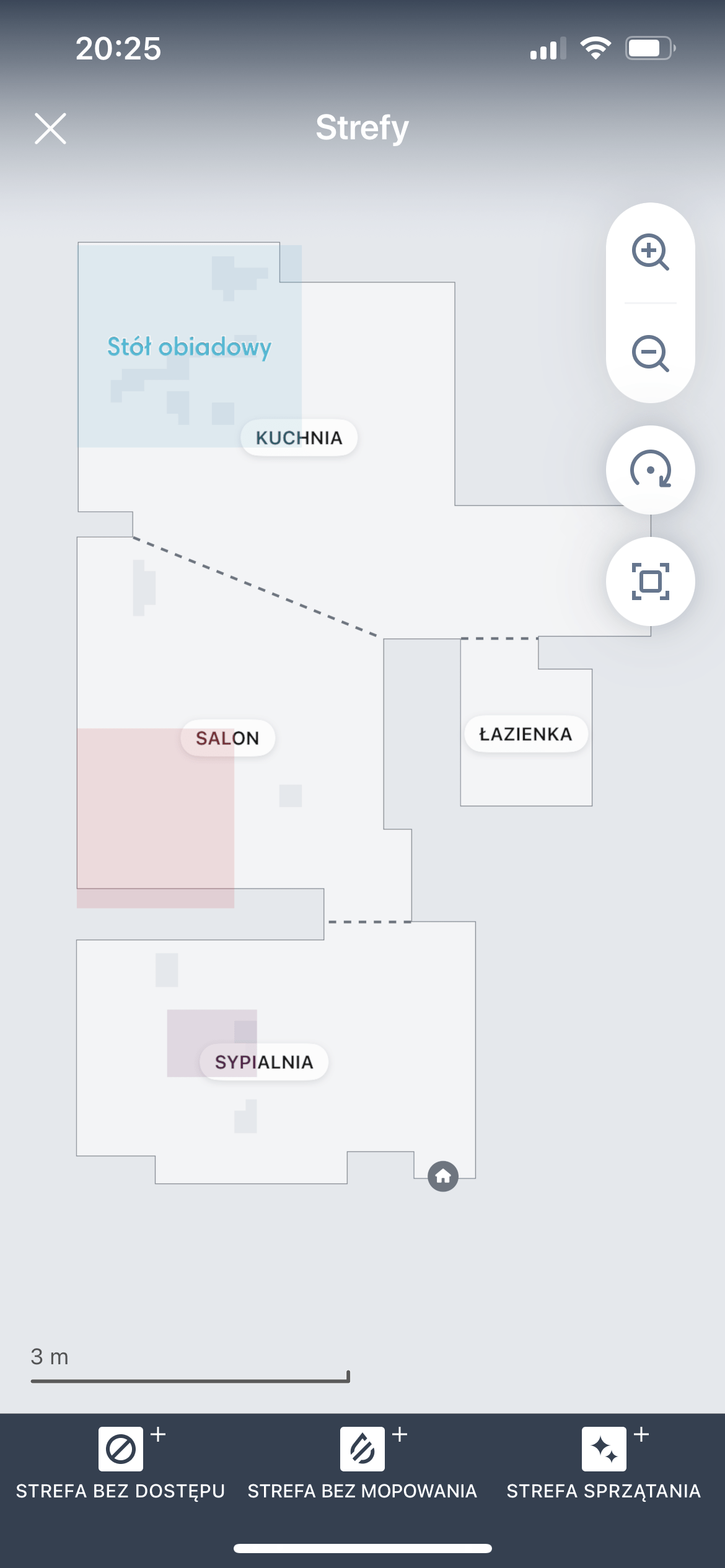 Wyznaczanie stref jest bardzo przydatne. Dzięki temu częściej możemy sprzątać np. pod stołem jako miejscem, w którym częściej zbiera się brud. Trzeba jednak pamiętać, o jednym istotnym fakcie – robot potraktuje linie wyznaczające granicę strefy jako ściany (czyli coś w co nie można wjechać), więc nie będzie sprzątał w tym miejscu, w którym przebiegają (uznając, że wjechałby na ścianę).