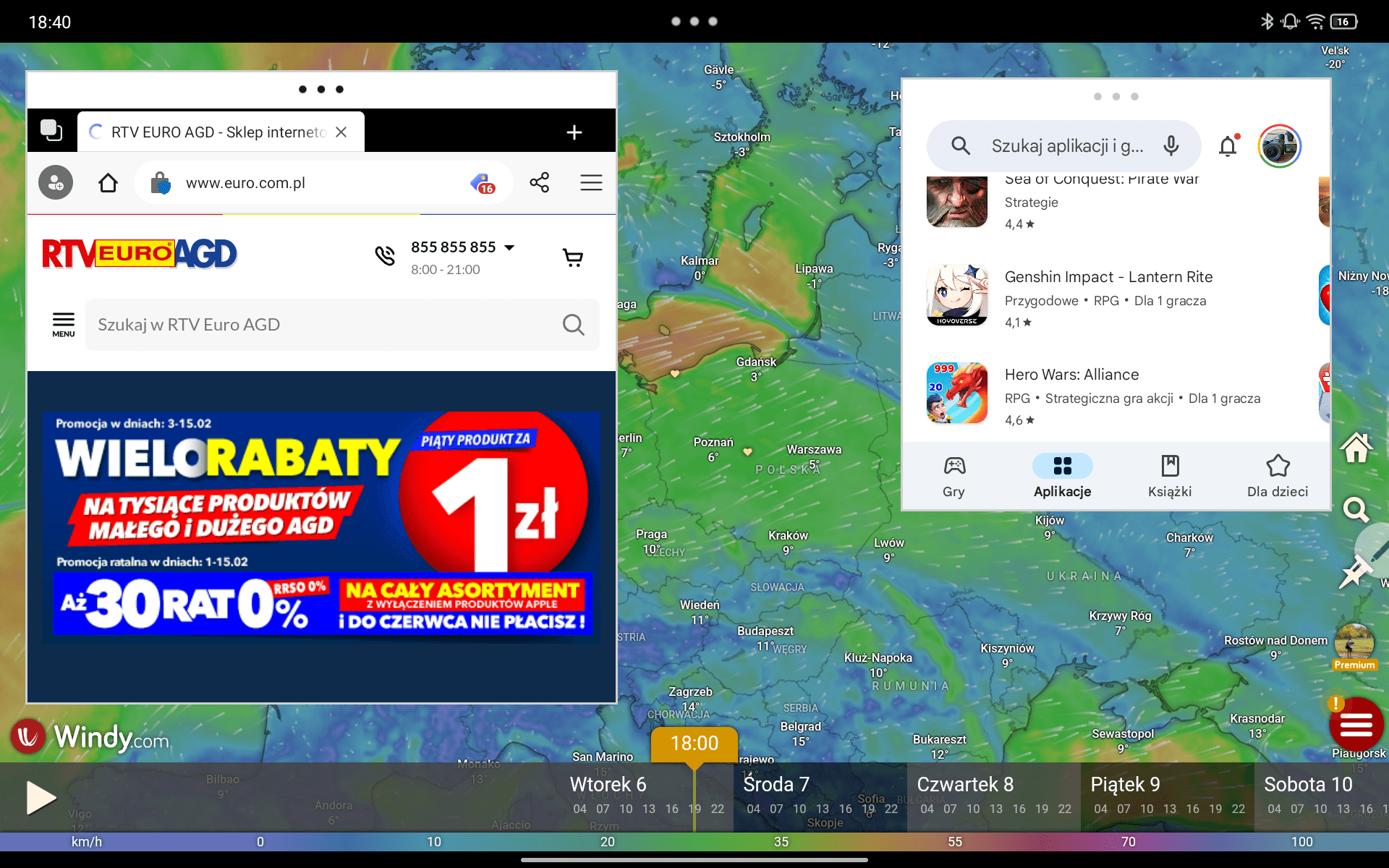 W dodatkowym oprogramowaniu nie zabrakło ciekawostek – system może pracować z podzielonym ekranem, a także jest w stanie wyświetlić do 5 zgodnych aplikacji w pływających okienkach, wzorem systemów znanych z komputerów. Multitasking na tablecie w stylu znanym z dużych komputerów? Oczywiście!
