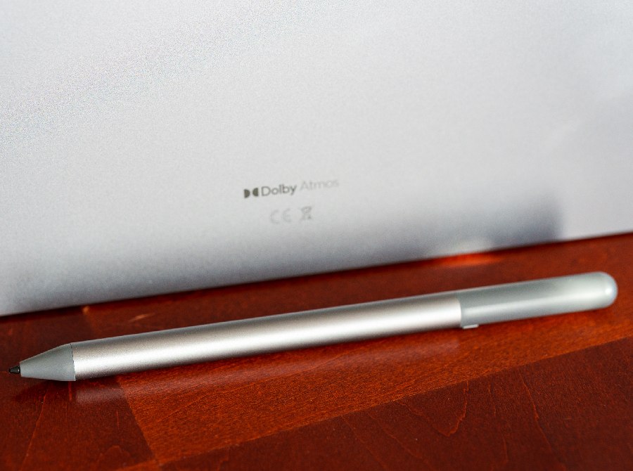 Dwie cechy dodatkowo wyróżniają Lenovo Tab M11 w tej klasie cenowej: jedną z nich jest wyjątkowo dobre nagłośnienie – na obudowie wyraźnie widać wyjścia aż 4 głośników położonych na krótszych bokach, a producent podkreśla, że sprzęt ma wsparcie systemu Dolby Atmos i potrafi odtwarzać dźwięk przestrzenny. Drugą jest współpraca z piórkiem Lenovo Tab Pen, które jest częścią zestawu sprzedażowego.