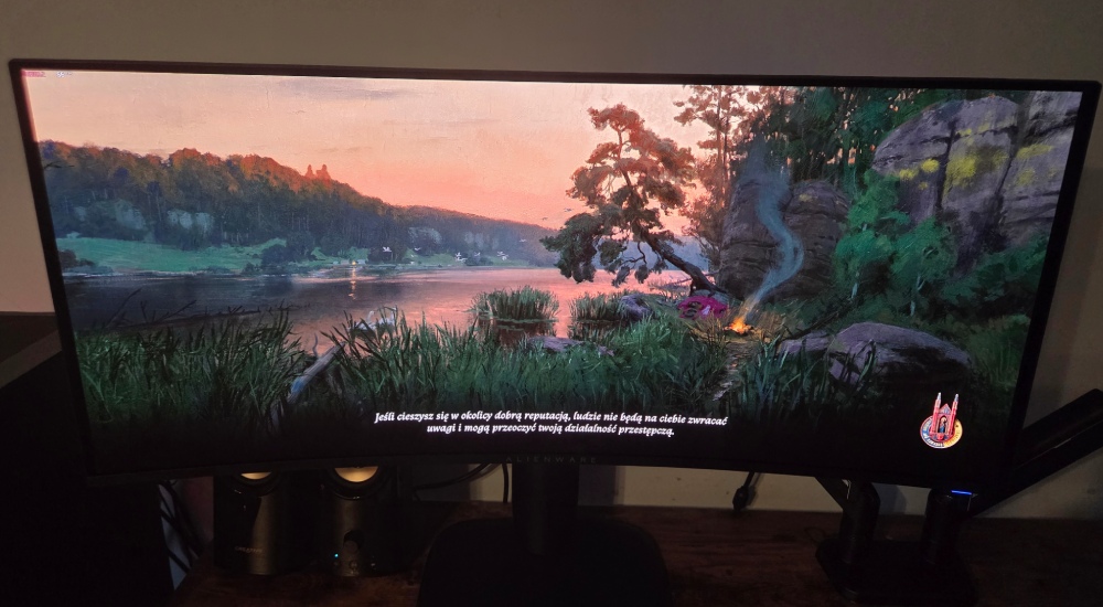 Alienware AW3425DW testuję od miesiąca – przełożyło się to na kilkadziesiąt godzin gry i pewnie drugie tyle przeglądania internetu i oglądania filmów. I po tym czasie zaczynam rozumieć, skąd bierze się popularne wśród fanów OLED-ów powiedzenie, że kto raz zobaczy obraz na OLED-zie, ten nie chce wracać do innych ekranów. Jeżeli nie miałeś do tej pory kontaktu z tego rodzaju wyświetlaczami, to będziesz zachwycony. O przewadze w wyświetlaniu czerni, jaką mają OLED-y nad pozostałymi rodzajami matryc, powiedziano już chyba wszystko, jednak w przypadku Alienware AW3425DW to dopiero początek.