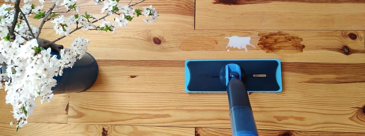 Lżejsze zabrudzenia znikały po jednym przejeździe mopa. Przy trudniejszych plamach (jak zaschnięty dżem) wystarczyło na chwilę zwolnić ruch albo przejechać mopem drugi, trzeci raz. Urządzenie świetnie radziło sobie też z płynami – zbierało je sprawnie, nie pozostawiając mokrych śladów.