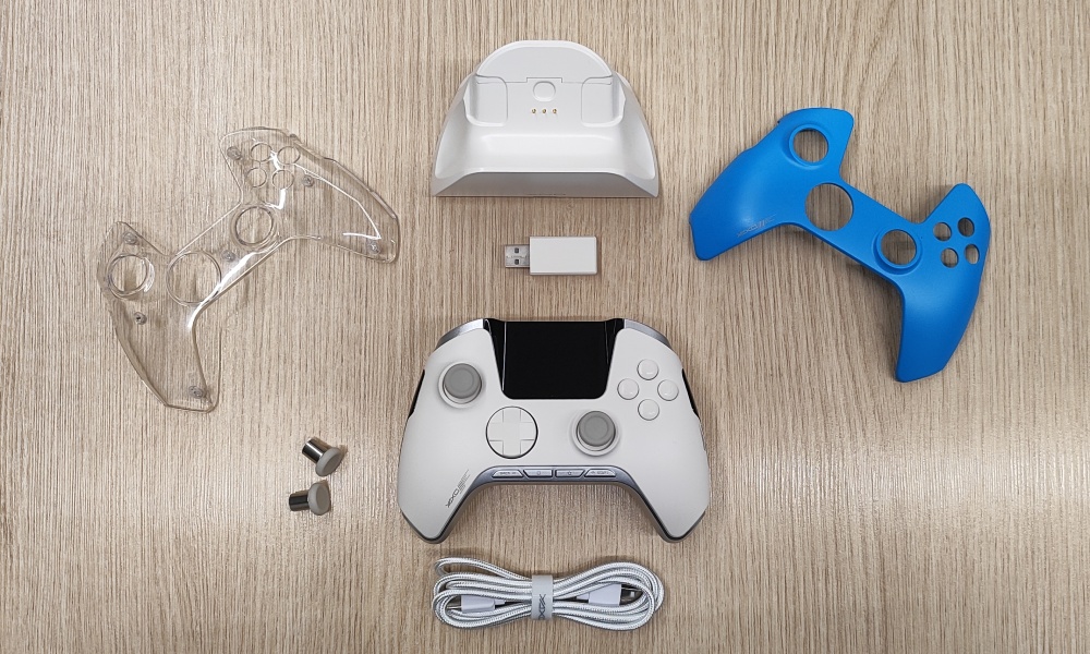 Pierwsze, na co zwróciłem uwagę, to sama jakość pudełka. Nie wpływa ono oczywiście na jakość produktu, ale miło, gdy użytkownik już od samego początku czuje, że ma do czynienia z produktem z wyższej półki. Wnętrze opakowania zostało bardzo starannie zorganizowane – każdy element ma tutaj swoje miejsce, a poszczególne akcesoria zostały zapakowane oddzielnie. Producent zadbał nawet o drobiazgi: gałki analogowe zabezpieczono specjalnymi piankowymi osłonkami, które chronią je przed uszkodzeniami w transporcie.