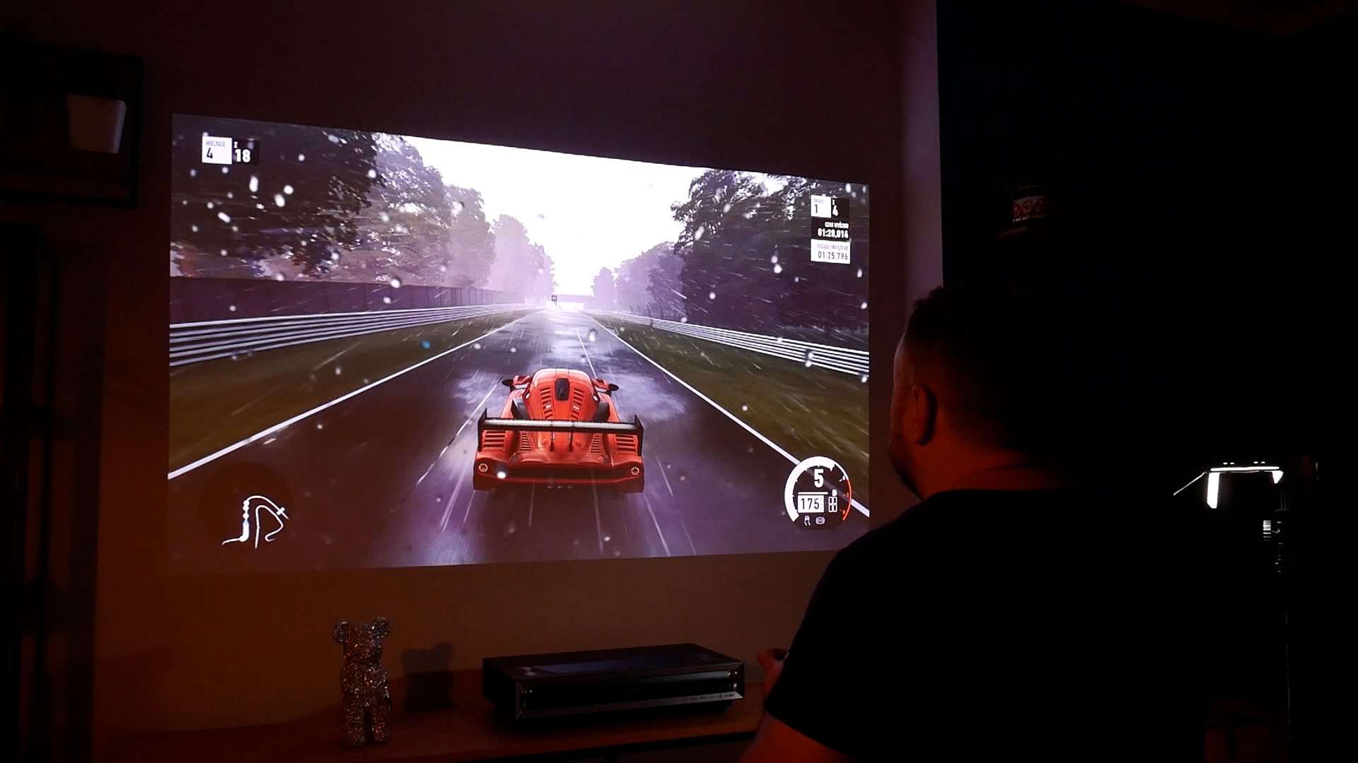 Hisense PX3 sprawdzi się także świetnie do gamingu. Długie sesje w Forza Motorsport 7 to była czysta przyjemność. Projektor oferuje wszystko, czego gracz potrzebuje: niski input lag, tryb ALLM oraz menu gamingowe znane z telewizorów Hisense. HDR w grach dodaje oprawie graficznej niesamowitej atrakcyjności.