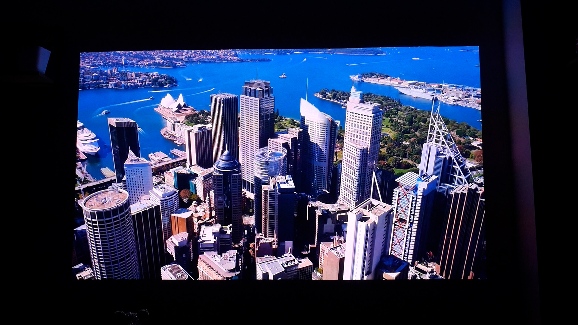 Dzięki temu można wyświetlać obraz o przekątnej od 80 do 150 cali na zwykłej ścianie lub dowolnym ekranie ramowym, ale nie polecam łączenia go z ekranem rozwijanym z sufitu – projektory tego typu nie wybaczają najmniejszej krzywizny na powierzchni projekcyjnej, każda jest od razu widoczna na wyświetlanym materiale.