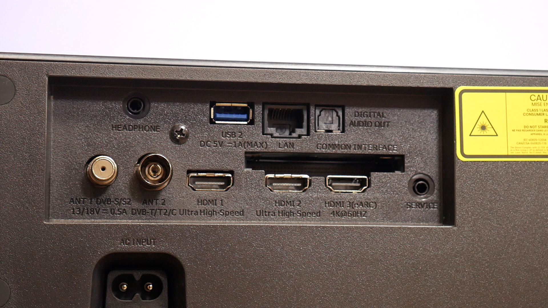 Hisense PX3 ma dużo złącz, w tym aż trzy porty HDMI, z czego dwa to HDMI 2.1 (możesz więc podłączyć do niego PS5 czy Xbox Series X), a jedno wspiera standardy eARC oraz CEC. Do dyspozycji użytkownika są również porty USB, optyczne wyjście dźwięku i złącze antenowe.