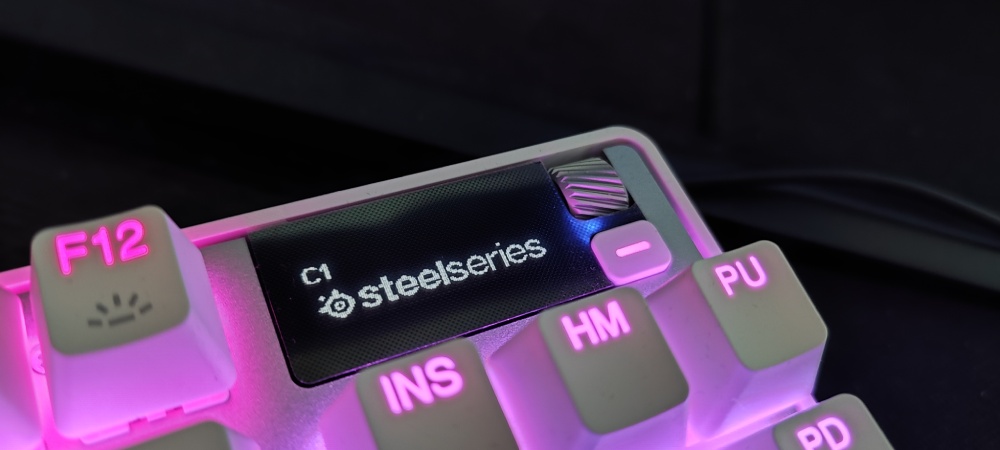 Wspominałem już wcześniej, że Apex Pro TKL Gen 3 wyposażono w niewielki ekran OLED Smart Display, który pełni funkcję centrum sterowania bez potrzeby wychodzenia z gry. Ekran pozwala na szybkie zmiany ustawień, takich jak punkt aktywacji klawiszy, włączanie lub wyłączanie funkcji Rapid Trigger, a także sterowanie multimediami. Co ciekawe, można na nim wyświetlać również informacje z wybranych aplikacji – np. powiadomienia z różnych progrmów czy aktualny status systemu. Sam wyświetlacz jest czytelny i dobrze reaguje na zmiany, choć jego zastosowanie w praktyce będzie raczej dodatkiem i ciekawostką niż kluczową funkcją dla większości graczy.
