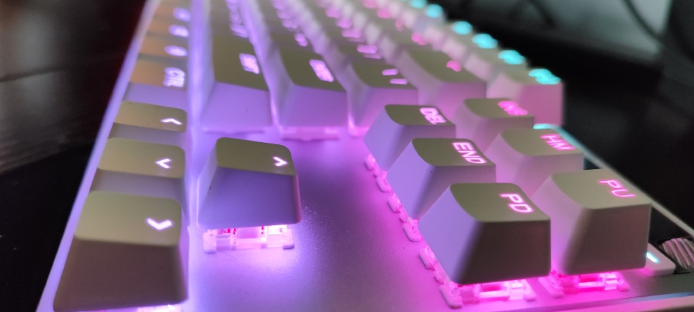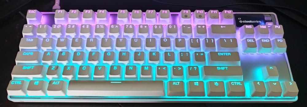 Na koniec zostawiłem kwestię podświetlenia, bo dla wielu użytkowników może to być sprawa drugorzędna – w końcu liczy się przede wszystkim działanie klawiatury. Jednak w praktyce okazuje się, że dobrze zaprojektowane podświetlenie to nie tylko kwestia estetyki, ale też istotny element wpływający na komfort użytkowania, zwłaszcza podczas grania lub pracy w słabszym oświetleniu. SteelSeries Apex Pro TKL Gen 3 oferuje bardzo szerokie możliwości personalizacji dzięki technologii Prism Sync, która pozwala na synchronizację efektów świetlnych z innymi urządzeniami tej marki. Jeśli masz już myszkę lub słuchawki SteelSeries, możesz stworzyć spójny wizualnie setup, co prezentuje się naprawdę efektownie.
