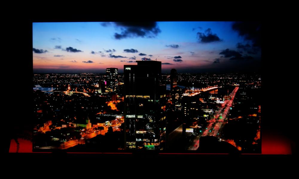 Telewizor ma szczytową jasność na poziomie 1200 nitów. To oczywiście jasność, którą zobaczymy tylko na ułamku matrycy, ale i tak jest to świetny wynik. Zapewnia ona bardzo dobre efekty HDR, mocne rozbłyski i dynamikę oświetlenia. To często niedoceniany parametr, a robi fantastyczną robotę w filmach, serialach, a także grach. Wysoka jasność wpływa także na lepszą widoczność obrazu w mocno nasłonecznionych pomieszczeniach, zapewnia więc większy komfort oglądania.