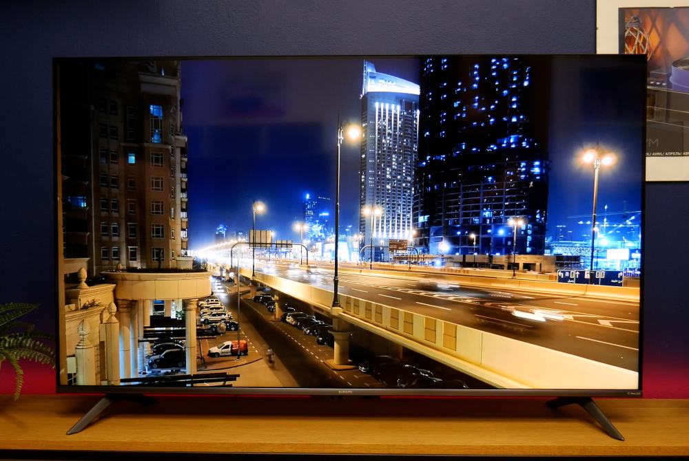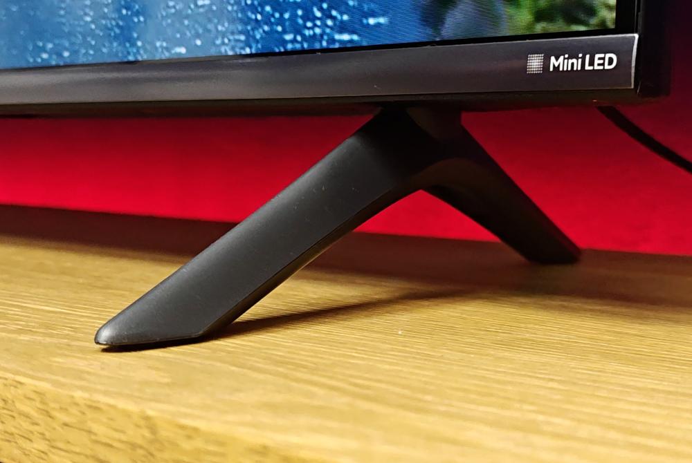 Telewizor wygląda podobnie jak modele chińskiego producenta z ostatnich lat. Jest minimalistyczny i nowoczesny. Duży ekran otaczają smukłe ramki – mają około 2 mm grubości. Jedynie ta dolna, wykonana z materiału przypominającego szczotkowane aluminium, jest nieco grubsza. Na jej środku umieszczono logo, a po prawej stronie napis potwierdzający, że jest to Mini Led – w sumie, patrząc na cenę tego modelu, na początku może być trudno w to uwierzyć.