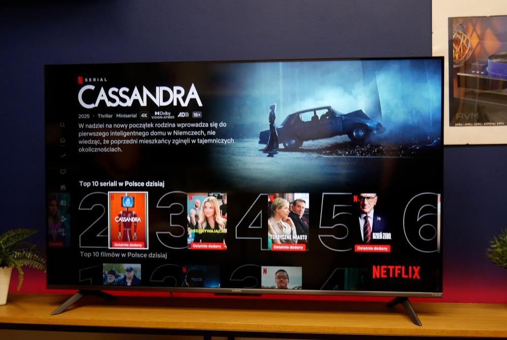 Google TV w tym modelu oferuje pełny pakiet funkcji smart, więc pod względem dostępnych treści i aplikacji niczego nie brakuje. Warto jednak pamiętać, że nie jest to telewizor premium i mogą zdarzyć się momenty, gdy system potrzebuje chwili na załadowanie aplikacji. To jednak naturalny kompromis w tej klasie cenowej, z którym trzeba się liczyć.