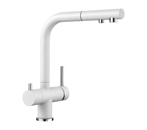 BLANCO FONTAS-S II Silgranit-Look Biały.<ul> <li>Wygodny kran z mieszaczem 3 w 1: filtrowana i niefiltrowana woda z wyciąganego węża.</li> <li>Oddzielny obieg wody: dźwignia zimnej i ciepłej wody po prawej, dźwignia wody przefiltrowanej po lewej.</li> <li>Higieniczny: dodatkowa wylewka do wody filtrowanej - bez mieszanki z wodą wodociągową.</li> <li>Oszczędność miejsca i praktyczność: dzięki kranowi 3 w 1 nie jest wymagane dodatkowe wiercenie w celu zaopatrzenia w filtrowaną wodę.</li> <li>Zintegrowana wylewka dla obu rodzajów wody ze specjalnym regulatorem strumienia</li> <li>Wykończenia powierzchni idealnie pasujące do zlewów i misek.</li> <li>Obrotowa wylewka 180 ° dla większego zasięgu.</li> <li>Opatentowany regulator strumienia dla znacznie zmniejszonego osadzania się kamienia. </li></ul>