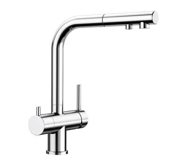 BLANCO FONTAS-S II Chromowana.<ul> <li>Oddzielny obieg wody: dźwignia zimnej i ciepłej wody po prawej, dźwignia wody przefiltrowanej po lewej</li> <li>Higieniczny: dodatkowa wylewka do wody filtrowanej - bez mieszanki z wodą wodociągową.</li> <li>Oszczędność miejsca i praktyczność: dzięki kranowi 3 w 1 nie jest wymagane dodatkowe wiercenie w celu zaopatrzenia w filtrowaną wodę.</li> <li>Zintegrowana wylewka dla obu rodzajów wody ze specjalnym regulatorem strumienia.</li> <li>Wykończenia powierzchni idealnie pasujące do zlewów i misek.</li></ul>