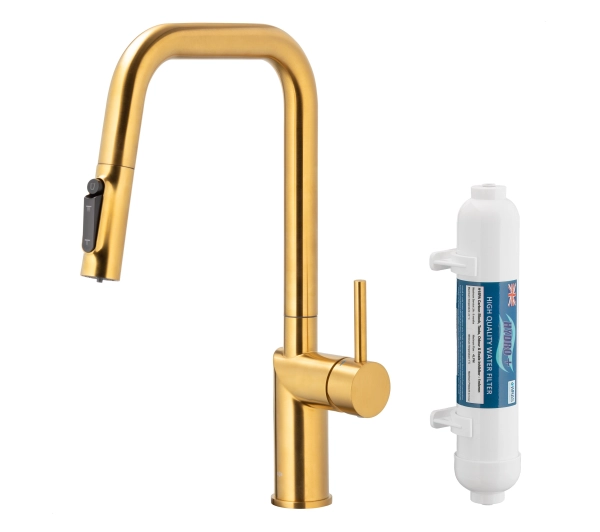 Nie trać miejsca na blacie i zapomnij o dzbanku filtrującym. Lepszym rozwiązaniem może się okazać podłączenie filtra wody do tej baterii kuchennej. Wystarczy jeden ruch, aby cieszyć się krystalicznie czystą, smaczną wodą bez szkodliwych substancji. To oszczędność miejsca, czasu i pieniędzy — koniec z kupowaniem wody i noszeniem ciężkich butelek.