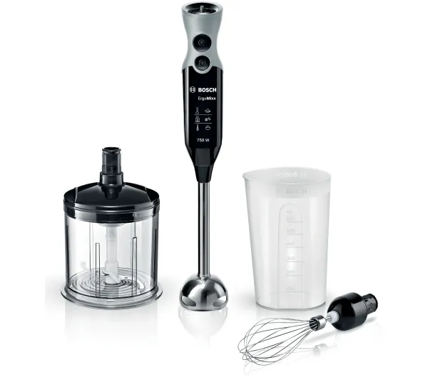 <h2>Bosch ErgoMixx MSM67160</h2>Bosch ErgoMixx MSM67160 to specjalista od kuchennych wyzwań! Z tym blenderem bez trudu przyrządzisz aksamitną zupę krem czy przygotujesz składniki na sałatkę. Dzięki 12-stopniowej regulacji prędkości możesz dostosować intensywność pracy do wykonywanego zadania.Nóż QuattroBlade z czterema precyzyjnymi ostrzami dokładnie rozdrabnia zarówno miękkie, jak i twarde składniki12 dostępnych ustawień pozwala dopasować prędkość obrotów do przygotowywanego daniaErgonomiczna obudowa stabilnie leży w dłoni poprawiając komfort pracyŁatwa i wygodna wymiana końcówek za pomocą jednego przycisku<h2>Poznaj blender Bosch ErgoMixx MSM67160</h2> Poczwórne ostrzeBlender Bosch ErgoMixx MSM67160 to niezastąpiony pomocnik w kuchennych zadaniach. Urządzenie zostało wyposażone w innowacyjny nóż QuattroBlade, który znacznie podnosi efektywność pracy. Precyzyjne, poczwórne ostrze pozwala uzyskać aksamitną konsystencję miksowanych potraw bez rozpryskiwania składników. Regulacja prędkościTen blender umożliwia wygodną regulację prędkości obrotów. Możesz wybierać spośród 12 ustawień, aby dopasować intensywność pracy urządzenia do rodzaju składników i efektu, który chcesz uzyskać. Podczas rozdrabniania mrożonych owoców, orzechów czy twardych warzyw skorzystaj z wyższych obrotów lub funkcji Turbo (rozdrabnianie z dużą mocą). Niższe obroty sprawdzą się przy mieszaniu delikatnych składników. Komfortowa obsługaUrządzenie Bosch ErgoMixx MSM67160 zostało zaprojektowane z myślą o wygodnej obsłudze. Dzięki antypoślizgowym uchwycie i dużych przyciskach korzystanie z blendera poprawia komfort użytkowania, a ergonomicznie wyprofilowany uchwyt dobrze leży w dłoni i zapewnia stabilność przy wszelkich pracach. Łatwa wymiana końcówekZnajdujące się w zestawie końcówki do miksowania i ubijania umożliwiają przygotowywanie różnorodnych potraw. Mechanizm zwalniający w Bosch ErgoMixx MSM67160 sprawia, że ich wymiana jest prosta i nie wymaga użycia siły. Aby ściągnąć końcówkę, wystarczy wcisnąć odpowiedni przycisk. Końcówka do ubijaniaChcesz przyrządzić bitą śmietanę do dekoracji deseru? A może masz ochotę na tort bezowy lub aksamitny biszkopt? Żaden problem! Ten wszechstronny blender ręczny posiada specjalną końcówkę do ubijania składników. Dzięki niej bez trudu uzyskasz puszystą i lekką konsystencję przygotowywanych kremów czy ciast. Uniwersalny rozdrabniaczW zestawie z blenderem Bosch ErgoMixx MSM67160 znajdziesz rozdrabniacz, który pozwala szybko i precyzyjnie rozdrobnić składniki o różnej strukturze. Wyjmowane ostrze ze stali nierdzewnej poradzi sobie nawet z mięsem czy twardymi warzywami. Z jego pomocą poszatkujesz cebulę, orzechy czy delikatne zioła. Możesz także rozdrobnić lód, który wykorzystasz do przygotowania orzeźwiających drinków czy koktajli.<h2>Zawartość opakowania Bosch ErgoMixx MSM67160</h2>W opakowaniu Blender Końcówka do miksowania i ubijania Rozdrabniacz Pojemnik do miksowania Instrukcja obsługiBosch – marka godna zaufaniaWieloletnie zaufanie konsumentówProducent łączący potrzeby klientów z dążeniem do neutralności klimatycznej Jeden z liderów na rynku małego i dużego AGDGlobalny dostawca sprzętów do profesjonalnego i domowego użytku Jakość potwierdzona certyfikatami Certyfikacje produktowe i wydłużone gwarancje potwierdzają niezawodność sprzętów