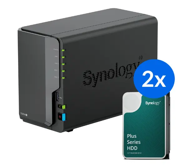 <h2>Synology DS224+ 12TB – Kompaktowy serwer NAS dla domowych użytkowników i małych firm</h2><p>Synology DS224+ to wszechstronny, dwuzatokowy serwer NAS z łączną pojemnością 12 TB. Zaprojektowany z myślą o użytkownikach, którzy potrzebują wydajnego rozwiązania do przechowywania, synchronizacji i ochrony danych, DS224+ oferuje zaawansowane funkcje zarządzania danymi w kompaktowej formie.</p><h4>Najważniejsze zalety produktu:</h4><ul> <li>12 TB przestrzeni dyskowej idealne na multimedia, dokumenty i kopie zapasowe</li> <li>Dwie zatoki dyskowe z możliwością rozbudowy</li> <li>System DSM oferujący intuicyjne zarządzanie plikami i aplikacjami</li> <li>Chmura hybrydowa zapewniająca optymalizację przechowywania danych</li> <li>Active Backup Suite umożliwiający kompleksową ochronę danych</li></ul><h4>Centralne miejsce dla Twoich danych</h4><p>DS224+ pozwala centralizować pliki w jednym miejscu, zapewniając wygodny dostęp z dowolnego urządzenia i lokalizacji. To idealne rozwiązanie dla pracy zespołowej lub indywidualnej.</p> <h4>Elastyczna przestrzeń dyskowa</h4><p>12 TB pojemności umożliwia przechowywanie dużej ilości danych, od multimediów po ważne dokumenty. Możliwość rozbudowy pozwala na dostosowanie serwera do rosnących potrzeb.</p> <h4>Synchronizacja w czasie rzeczywistym</h4><p>Funkcja synchronizacji plików pozwala na szybki dostęp do aktualnych wersji danych na wszystkich urządzeniach, niezależnie od miejsca ich przechowywania.</p> <h4>Zarządzanie przestrzenią z chmurą hybrydową</h4><p>Dzięki technologii hybrydowej Synology, rzadziej używane dane można przechowywać w chmurze, a najważniejsze pliki lokalnie, co optymalizuje zarządzanie przestrzenią.</p><h4>Kompleksowe zabezpieczenie danych</h4><p>Active Backup Suite zapewnia automatyczne tworzenie kopii zapasowych z komputerów, serwerów i aplikacji SaaS, oferując niezawodne zabezpieczenie danych i ich szybkie przywracanie.</p><h4>Intuicyjna obsługa multimediów</h4><p>Urządzenie pozwala organizować zdjęcia i filmy w albumy oraz bezpiecznie udostępniać je za pomocą chronionych linków. To doskonałe rozwiązanie zarówno dla rodzin, jak i dla kreatywnych zespołów.</p><h4>Prosty system zarządzania</h4><p>DSM to intuicyjny system operacyjny, który umożliwia łatwe zarządzanie plikami, aplikacjami i funkcjami bezpieczeństwa, niezależnie od poziomu zaawansowania użytkownika.</p><h4>Monitoring i ochrona w jednym</h4><p>DS224+ współpracuje z Synology Surveillance Station, umożliwiając zarządzanie kamerami IP oraz przechowywanie nagrań wideo, zwiększając bezpieczeństwo Twojego domu lub biura.</p><p>Kluczowe cechy:</p><ul> <li>12 TB przestrzeni na dane</li> <li>Dwie zatoki dyskowe z możliwością rozbudowy</li> <li>Obsługa chmury hybrydowej Synology C2</li> <li>Intuicyjny system DSM</li> <li>Zaawansowane funkcje backupu z Active Backup Suite</li></ul><p>Zawartość opakowania:</p><ul> <li>Synology DS224+ z dyskami o łącznej pojemności 12 TB</li> <li>Przewód zasilający</li> <li>Akcesoria montażowe</li> <li>Dokumentacja użytkownika</li></ul>