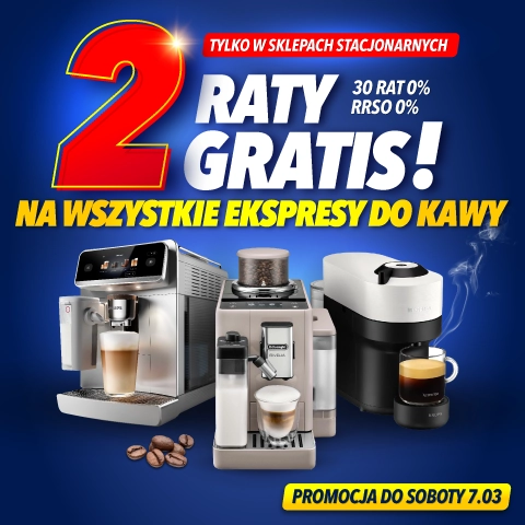 Promocja ratalna obowiązuje na ekspresy, a także na usługi zakupione łącznie z towarem objętym promocją (szczegóły w Regulaminie). Dotyczy kredytu o wartości od 300 zł do 30 000 zł.