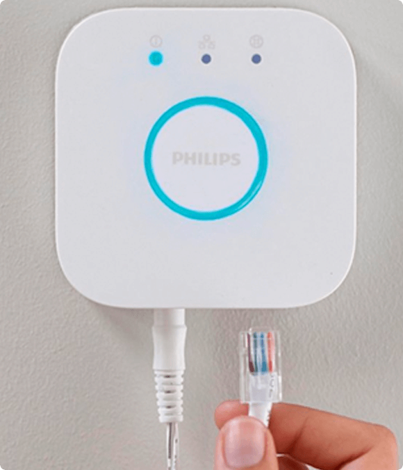Zasilane obniżonym napięciem oświetlenie jest łatwe do zainstalowania i całkowicie bezpieczne. Nie potrzebujesz fachowej pomocy — bez problemu samodzielnie podłączysz i ustawisz działanie systemu Hue.