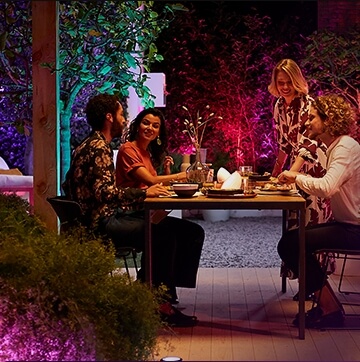 Radosna kolacja z przyjaciółmi, romantyczna randka, a może kameralny relaks? Dzięki Philips Hue w kilka chwil stworzysz magiczny klimat w swoim ogrodzie, sprawiając, że każde spotkanie stanie się niezapomniane.