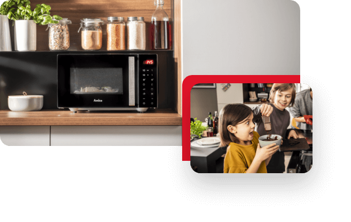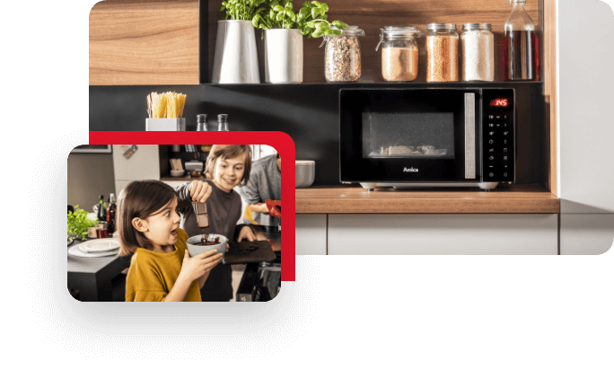 Mając dzieci w domu, doskonale wiesz, jak duża może być ich ciekawość. Z blokadą rodzicielską zapobiegniesz zmienianiu przez nich parametrów pracy kuchenki mikrofalowej, dzięki czemu Twoje dania będą udane. Amica wspiera rodziców!