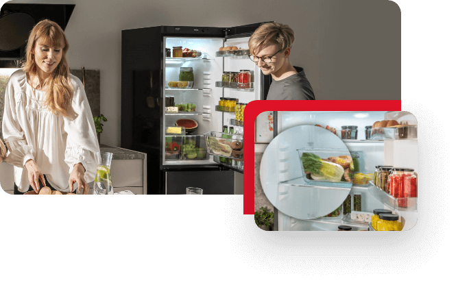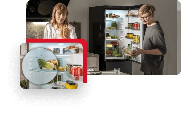 Specjalne funkcje, zastosowane w lodówkach marki Amica, maksymalnie wydłużają świeżość produktów, szczególnie tych najbardziej wrażliwych: owoców, warzyw, mięs czy ryb. Zyskaj komfort dużych zakupów bez martwienia się o marnowanie jedzenia!