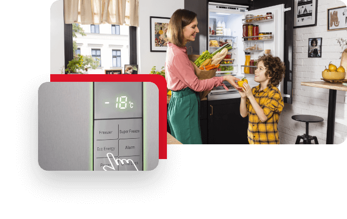 Dzień w pośpiechu i ciągle kursujesz między kuchnią a pokojem? W takiej sytuacji może się zdarzyć, że drzwi lodówki nie zostaną poprawnie zamknięte. Stwarza to ryzyko popsucia się Twoich produktów oraz konieczności rozmrażania urządzenia. Dzięki specjalnemu alarmowi będziesz wiedzieć, kiedy lodówka jest otwarta dłużej niż 90 sekund, aby w porę zainterweniować!