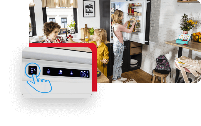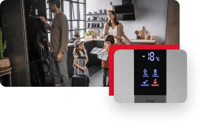 Często jesteś w ruchu i zdarza się, że nie ma Cię w domu przez dłuższy czas? Z pewnością docenisz Funkcję Wakacje w Twojej lodówce! Chłodziarka przełączy się w tryb oszczędny, utrzymując niską temperaturę – niwelującą powstawanie nieprzyjemnych zapachów, które mogłyby się pojawić przy całkowitym odłączeniu urządzenia. Jednocześnie pozwala Ci na niższe zużycie energii i pełną ochronę zamrożonych produktów.