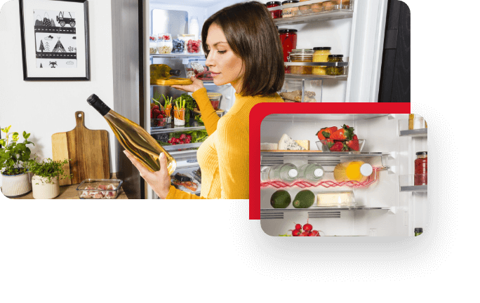 Masz większy produkt do umieszczenia w lodówce? Z FlexiShelf to żaden problem! Możesz dowolnie aranżować przestrzeń po swojemu – wyjmować i przestawiać półki, dopasowując ich ułożenie do aktualnych potrzeb. To codzienna wygoda użytkowania!