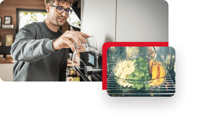 Zdrowie – Twoje i domowników – to priorytet. Z funkcją Termoobiegu przygotowywanie pełnowartościowych posiłków będzie prostsze niż kiedykolwiek. Ulubione dania zostaną perfekcyjnie podgrzane, osiągając idealną temperaturę – zarówno w środku, jak i na zewnątrz.