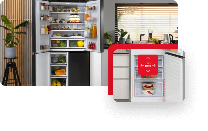 Duże szuflady w komorze zamrażarki sprawiają, że możesz komfortowo przechowywać nawet bardziej gabarytowe produkty, bez konieczności dzielenia ich na mniejsze porcje. To komfortowe rozwiązanie, które z pewnością docenisz.