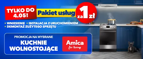 "Pakiet usług objęty promocją za 1 zł przy zakupie wybranych kuchni wolnostojących Amica" obowiązuje w sklepach RTV EURO AGD oraz na euro.com.pl (z wyłączeniem outletów) od 27.04.2026 r. od godz. 11.00 do 04.05.2026 r. lub do wcześniejszego wyczerpania się asortymentu. Obejmuje wybrane AGD marki Amica oraz wybrany pakiet usług. Klient przy zakupie produktu AGD może nabyć odpowiadający mu pakiet usług za 1 zł. Szczegóły promocji, w tym zasady jej łączenia się z innymi promocjami w Regulaminie w sklepach i na euro.com.pl. Zapoznaj się z regulaminem. Zapoznaj się z regulaminem.