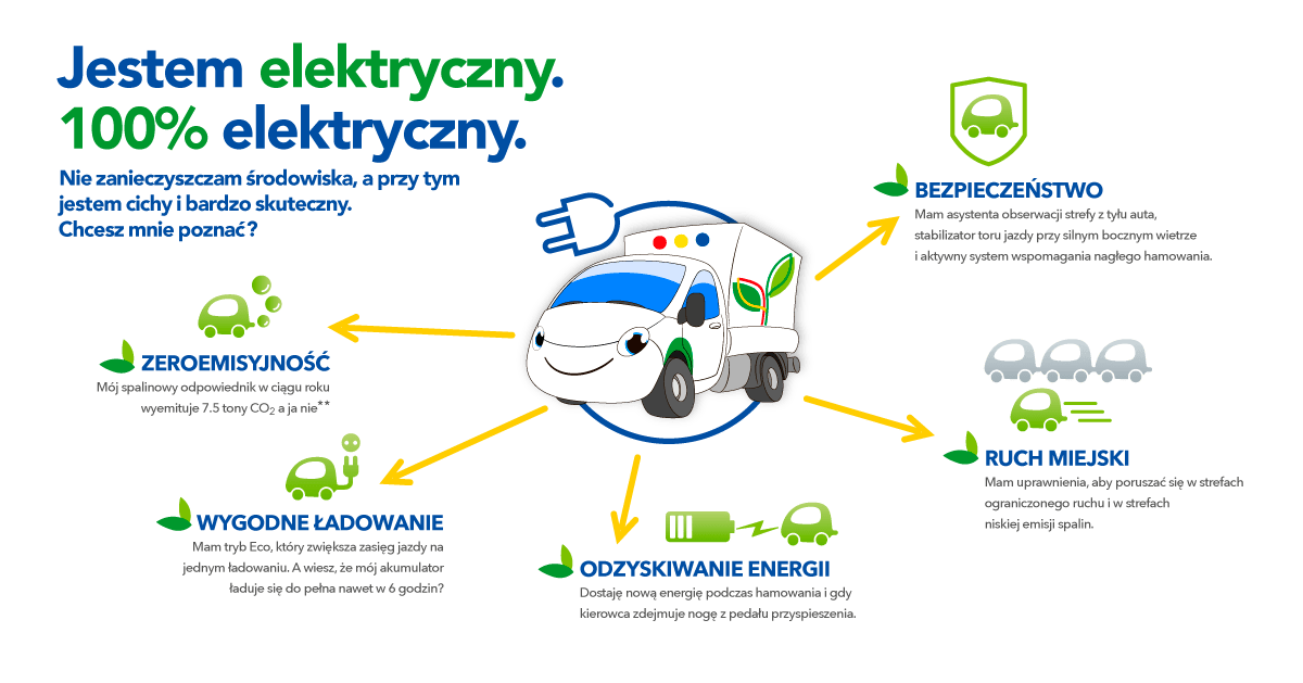 *Zgodnie z artykułem „Pojazdy elektryczne: mądry wybór dla środowiska” opublikowanym przez Europejską Agencję Środowiska w dniu 07.01.2019, modyfikowanym w dniu 11.05.2021 r.: w odniesieniu do zmian klimatu i jakości powietrza, samochody elektryczne są zdecydowanie lepszym rozwiązaniem niż samochody o napędzie benzynowym lub z silnikiem wysokoprężnym. Wbrew pewnym wątpliwościom publicznym dotyczącym korzyści dla środowiska związanych z samochodami elektrycznymi, wyniki badań naukowych w tym zakresie są coraz bardziej jednoznaczne.(…) Korzyści te będą się zwiększać w najbliższym czasie, ponieważ Europa będzie coraz częściej wykorzystywać energię ze źródeł odnawialnych w przyszłości.”