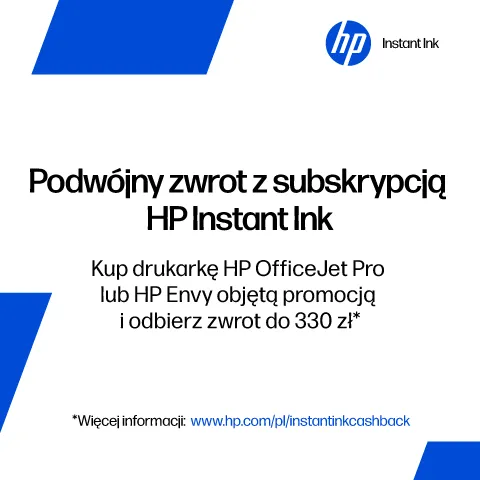 Zakupu towaru objętego promocją można dokonać do 31.01.2026 r., m.in. w sklepach RTV EURO AGD i na euro.com.pl. (z wyłączeniem outletów i produktów zakupionych na raty). Wysokość zwrotu uzależniona od zakupionego produktu i subskrypcji usługi HP Instant Ink. Szczegóły i ograniczenia w regulaminie promocji organizatora HP International Sarl, w sklepach RTV EURO AGD na euro.com.pl. Zapoznaj się z regulaminem.