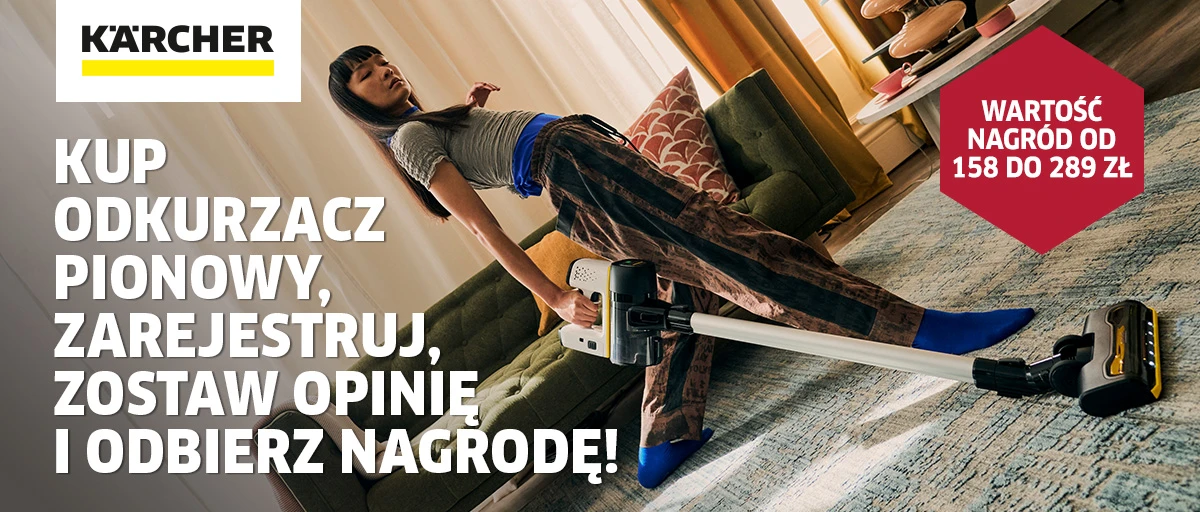 Promocja realizowana jest do 31.12.2025 r. lub do wyczerpania puli nagród (łącznie 400 szt. ). Rozdaj nagrody uzależniona od zakupionego Produktu. Szczegóły w Regulaminie Organizatora (Kärcher Sp. z o.o.) dostępnym m.in. w sklepach RTV EURO AGD i na euro.com.pl. Regulamin