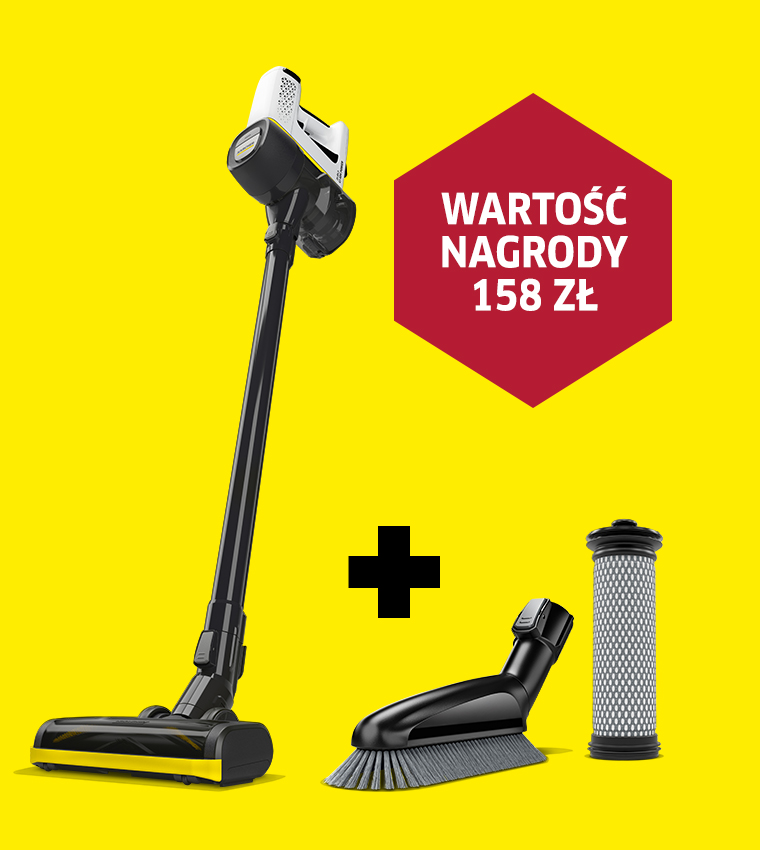 Kup odkurzacz pionowy objęty promocją w terminie od 1 listopada do 31 grudnia 2025. Zachowaj dowód zakupu. Promocja dotyczy wybranych urządzeń, szczegóły i warunki promocji dostępne w regulaminie.