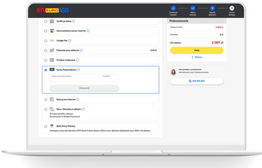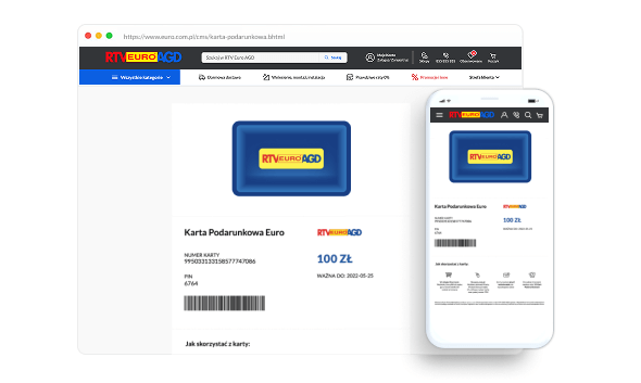 W przypadku zakupu karty na stronie internetowej euro.com.pl/kartapodarunkowa,