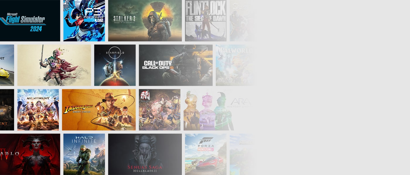 Zagraj w ulubione tytuły i setki innych gier za jedną niską opłatą miesięczną. Przygotuj się na gorący sezon gier z nowymi tytułami, które niedawno dołączyły do subskrypcji Game Pass, takimi jak Call of Duty: Modern Warfare III, EA FC 24 i Diablo IV . Zanurz się w ulubionych seriach, takich jak Minecraft, Age of Empires, Forza oraz Halo. Bądź też gotowy na nowe gry, które wkrótce pojawią się w Game Pass Ultimate, takie jak Call of Duty: Black Ops 6, Flight Simulator 2024, Indiana Jones and the Great Circle oraz Avowed i zagraj w nie już w dniu premiery.
