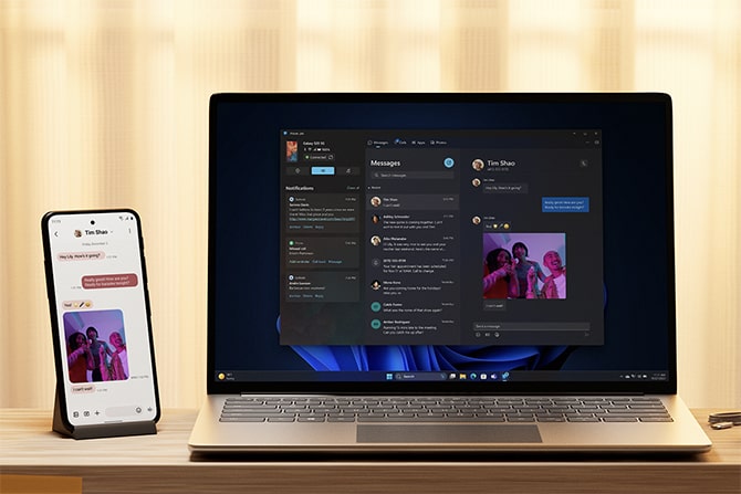 [4] Zarówno Microsoft Phone Link, jak i komputer wymagają połączenia z siecią Wi-Fi, można też wyrazić zgodę, aby aplikacja korzystała z danych komórkowych.