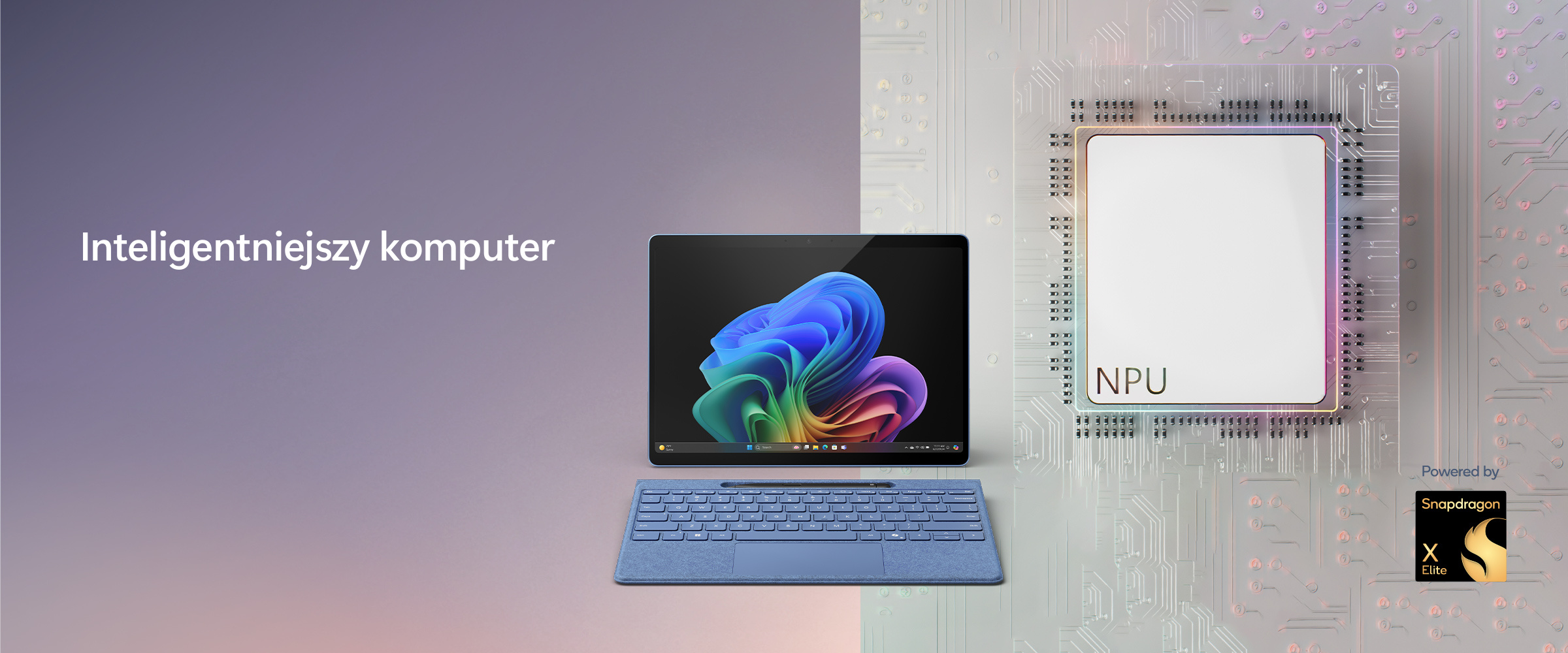 Dzięki turbodoładowanemu procesorowi NPU, obsługiwanemu przez zupełnie nowe procesory Snapdragon® X Series Platform, wrażenia z użytkowania nowego urządzenia Surface są niezrównane za sprawą niesamowitej szybkości i płynności działania.