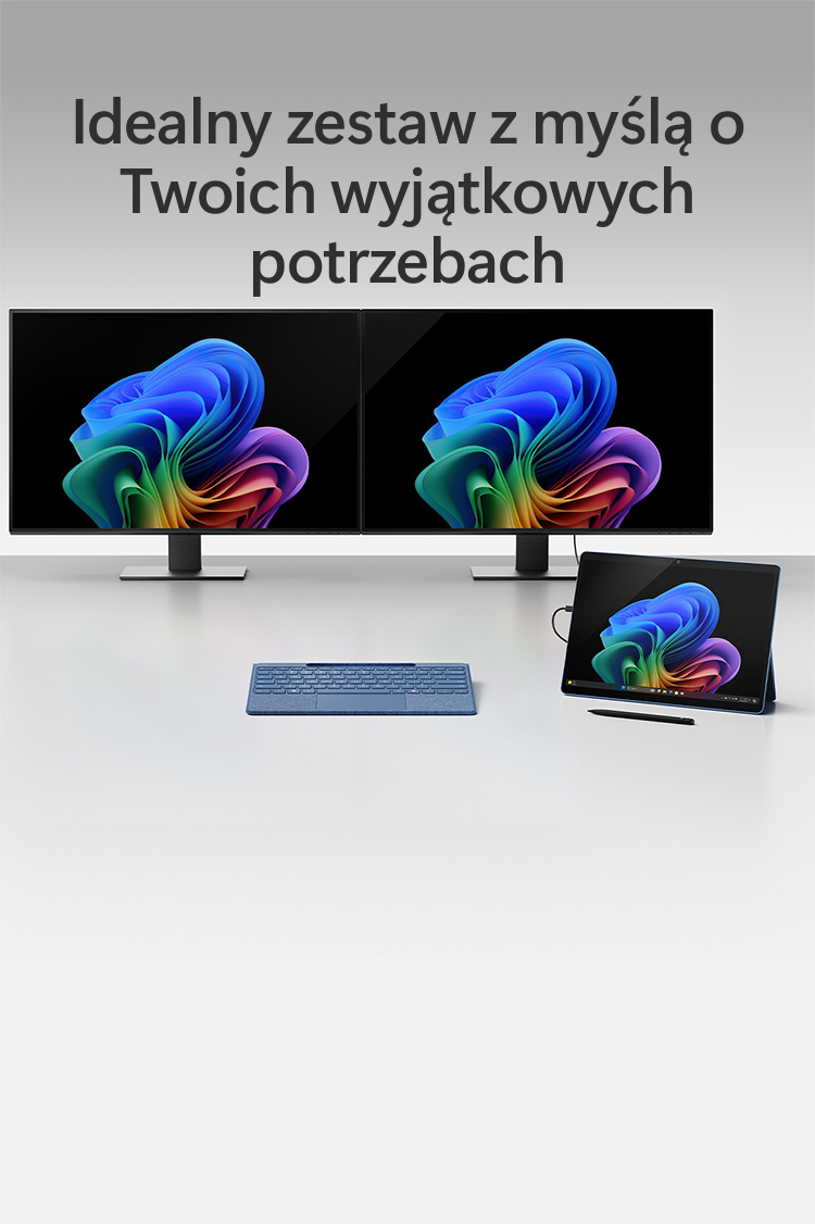 Twój styl, Twoje parametry, Twój nowy komputer. Wybierz komputer Surface Copilot+ PC o odpowiedniej konstrukcji, wydajności i wszechstronności.