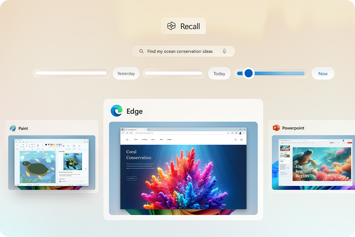 3 Funkcja Recall będzie dostępna wkrótce w popremierowej aktualizacji systemu Windows. Zobacz aka.ms/copilotpluspcs. Funkcja zoptymalizowana pod kątem wybranych języków (angielski, chiński (uproszczony), francuski, hiszpański, japoński i niemiecki). Obowiązują ograniczenia dotyczące zawartości i miejsca w pamięci. Więcej informacji pod adresem https://aka.ms/copilotpluspcs