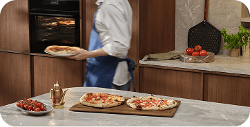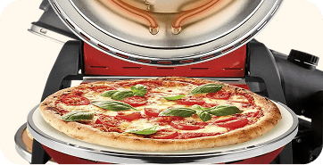 - Czas wypieku skraca się do minimum: Pizza jest gotowa w czasie od 90 do 120 sekund, co zapobiega wysuszeniu składników i sprawia, że ser pozostaje idealnie kremowy.