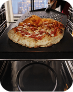 - Maksymalne nagrzewanie: Piekarnik należy uruchomić na najwyższą możliwą temperaturę (zazwyczaj 250-275oC co najmniej 30–45 minut przed planowanym włożeniem pierwszej pizzy. Pozwala to na pełne nagrzanie nie tylko powietrza, ale i ścianek urządzenia.