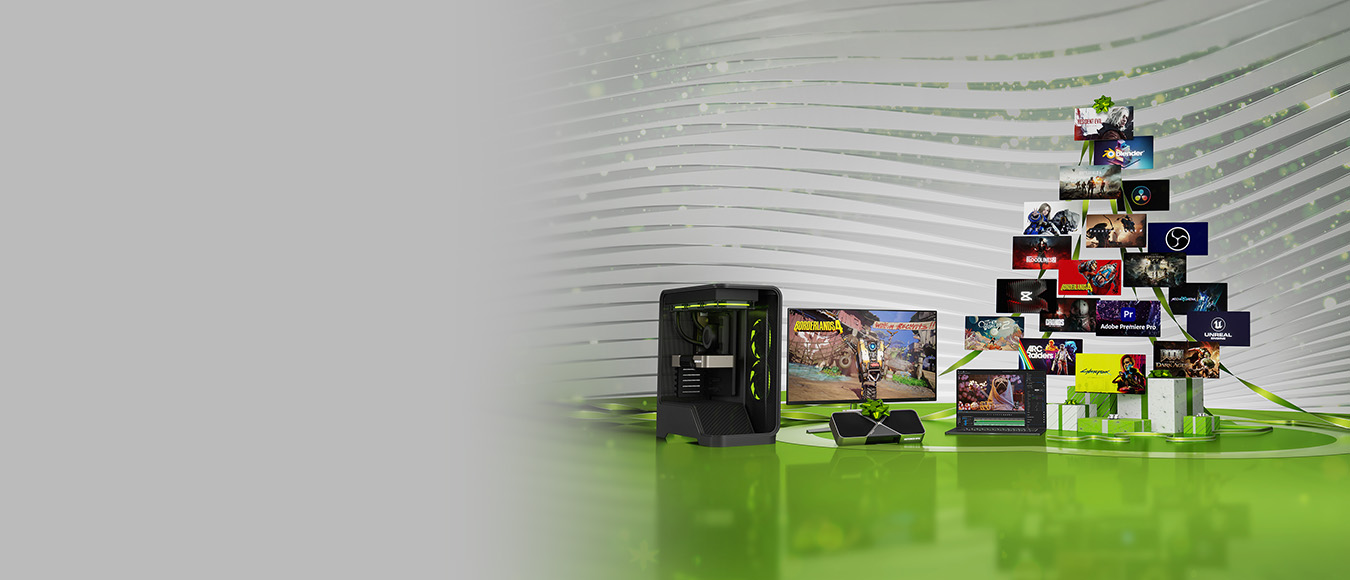 Tegoroczne Święta będą wyjątkowe dzięki wspaniałym ofertom na karty graficzne NVIDIA GeForce RTX™ z serii 50, laptopy, komputery stacjonarne, wyświetlacze G-SYNC® i GeForce NOW™. Zasmakuj w oszałamiających efektach wizualnych, responsywności i wydajności, stworzonych z myślą o dzisiejszych grach, aplikacjach i przyszłościowych rozwiązaniach.