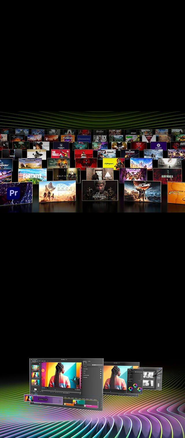 Dzięki wyjątkowym rozwiązaniom NVIDIA Studio zapewnia niesamowitą wydajność podczas edycji wideo, renderowania 3D i projektowania. Podkręć najbardziej wymagające projekty przy użyciu wyjątkowych narzędzi z RTX™ i AI. Sterowniki Studio zapewniają stabilność i gwarantują, że Twoje aplikacje do pracy twórczej są zawsze aktualne. Odblokuj kreatywność bez ograniczeń.