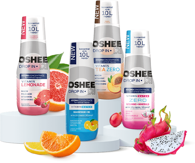 Każdy koncentrat po rozcieńczeniu daje nawet do 10 litrów napoju. W zależności od wariantu łączą elektrolity z wybranymi witaminami i minerałami. Dostępne są także wersje ZERO. Z OSHEE DROP IN przygotujesz napój w kilka sekund — w domu, pracy lub w drodze.