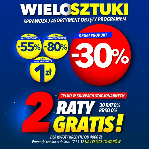 Planujesz zakup nowego sprzętu RTV, AGD lub elektroniki użytkowej? Masz szansę zyskać jeszcze więcej dzięki programowi Wielosztuki! To prosty sposób na realne oszczędności – im więcej kupujesz, tym większy rabat zyskujesz na najtańszy z wybranych produktów.