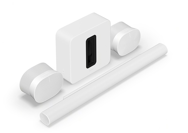 Sparuj Arc Ultra z Sonos Sub i głośnikami tylnymi Era 300, aby uzyskać niezrównany dźwięk przestrzenny Dolby Atmos z basami, które możesz poczuć, i zachwycająco szczegółowym brzmieniem dochodzącym z każdej strony.