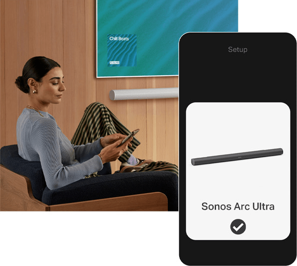 kino domowe Błyskawicznie przenieś dźwięk telewizyjny z Arc Ultra do Sonos Acr i ciesz się niesamowitym, spersonalizowanym dźwiękiem przestrzennym z dynamicznym śledzeniem ruchu głowy.