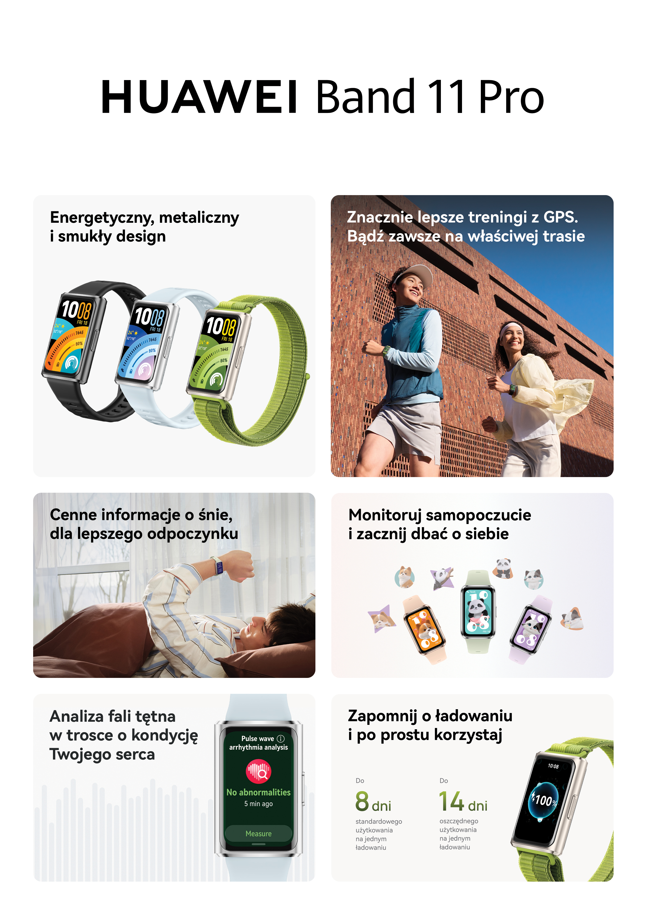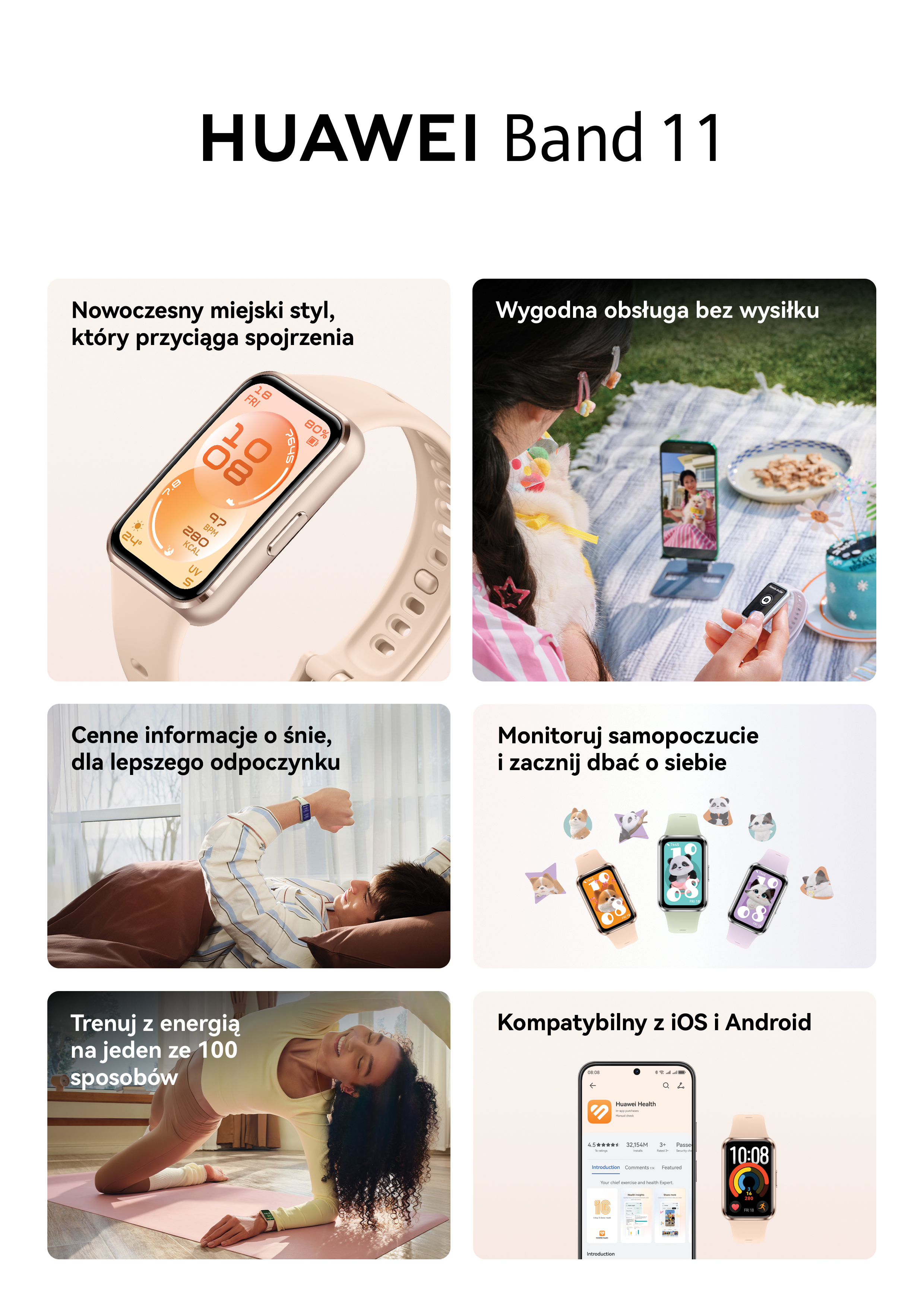 Pomiar: kroki, dystans, kalorie, jakość snu, pomiar natlenienia krwi (Sp02), tętno, poziomu stresu
